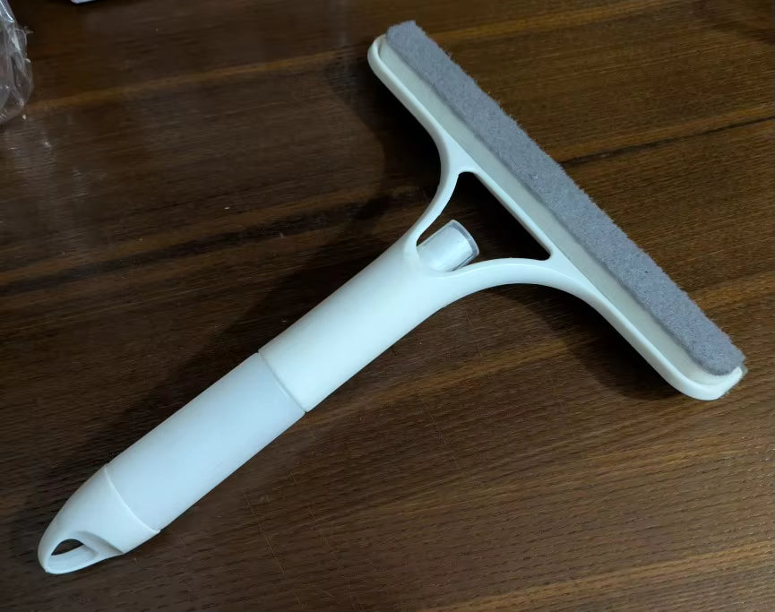 The WonderScraper combines a refillable spray bottle, a microfiber cleaning pad, and a silicone squeegee into one compact tool letting you spray cleaning solution, scrub away dirt, and wipe surfaces dry in one go.